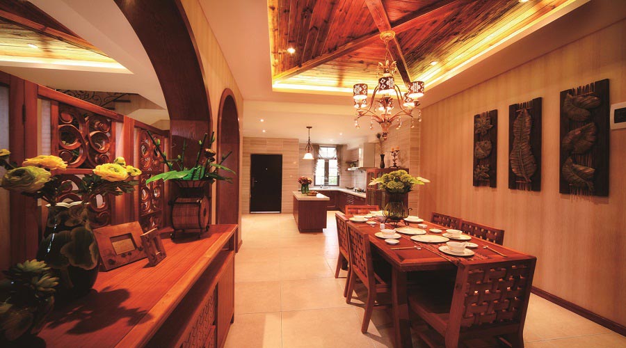 結(jié)合了東南亞民族島嶼特色及精致文化品位的家居設(shè)計(jì)方式,多適宜喜歡靜謐與雅致、文化修養(yǎng)較高的成功人士。廣泛地運(yùn)用木材和其他的天然原材料,如藤條、竹子、石材、青銅和黃銅,以及深木色的家具,局部采用一些金色的壁紙、絲綢質(zhì)感的布料,再加上變化的燈光體現(xiàn)了東南亞風(fēng)格的穩(wěn)重及親近自然的感覺一:接近自然,能抒發(fā)身心的一種新潮風(fēng)格。